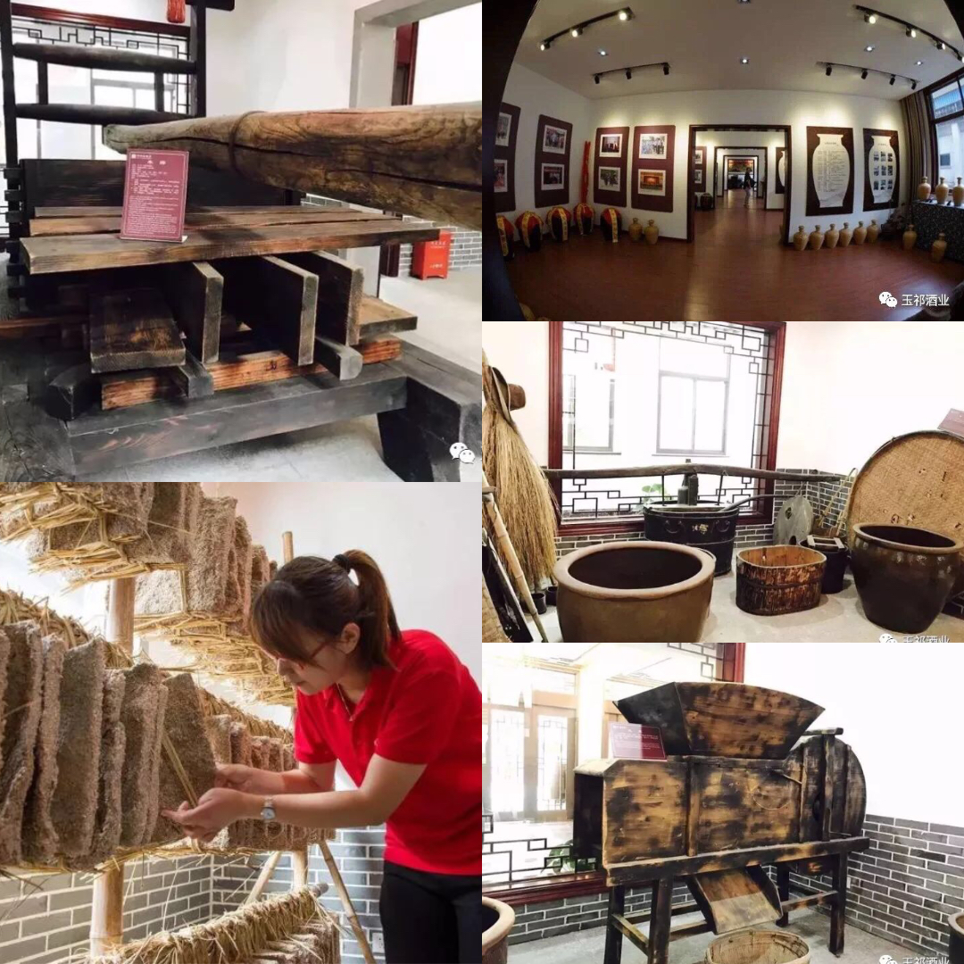 最后來到雙套酒技藝展覽館,這里有木蒸、濾漿架、濾漿桶、拌酵缸、裝曲小笆斗、制曲箱、壓榨墜石等一大批實物器具,結(jié)合兩邊墻上一張張的圖片資料,生動形象地將玉祁雙套釀酒的歷史、操作過程等原汁原味地呈現(xiàn)了出來。