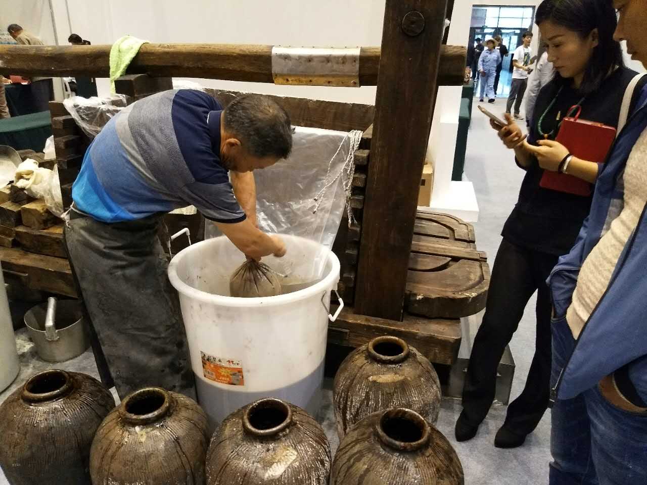 本屆文博會(huì)玉祁酒業(yè)將擁有幾十年釀酒經(jīng)驗(yàn)的釀酒師傅帶到現(xiàn)場(chǎng),并將公司的木榨運(yùn)到會(huì)場(chǎng),請(qǐng)師傅為大家現(xiàn)場(chǎng)展示傳統(tǒng)木榨黃酒工藝。